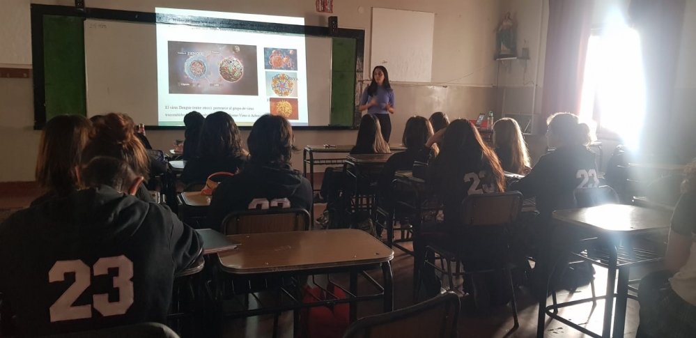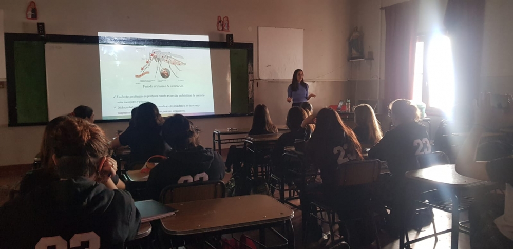 En el marco de la asignatura Educación para la Salud lo/as estudiantes de 6 año C, compartieron una charla con Biol. Carola Soria del equipo de EduDengue de la FCEFyN-UNC, donde estuvieron aprendiendo acerca de la problemática del Dengue y los mosquitos para luego trabajar en distintos proyectos de investigación y difusión de la problemática.