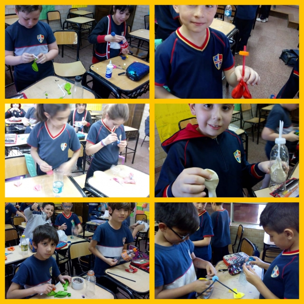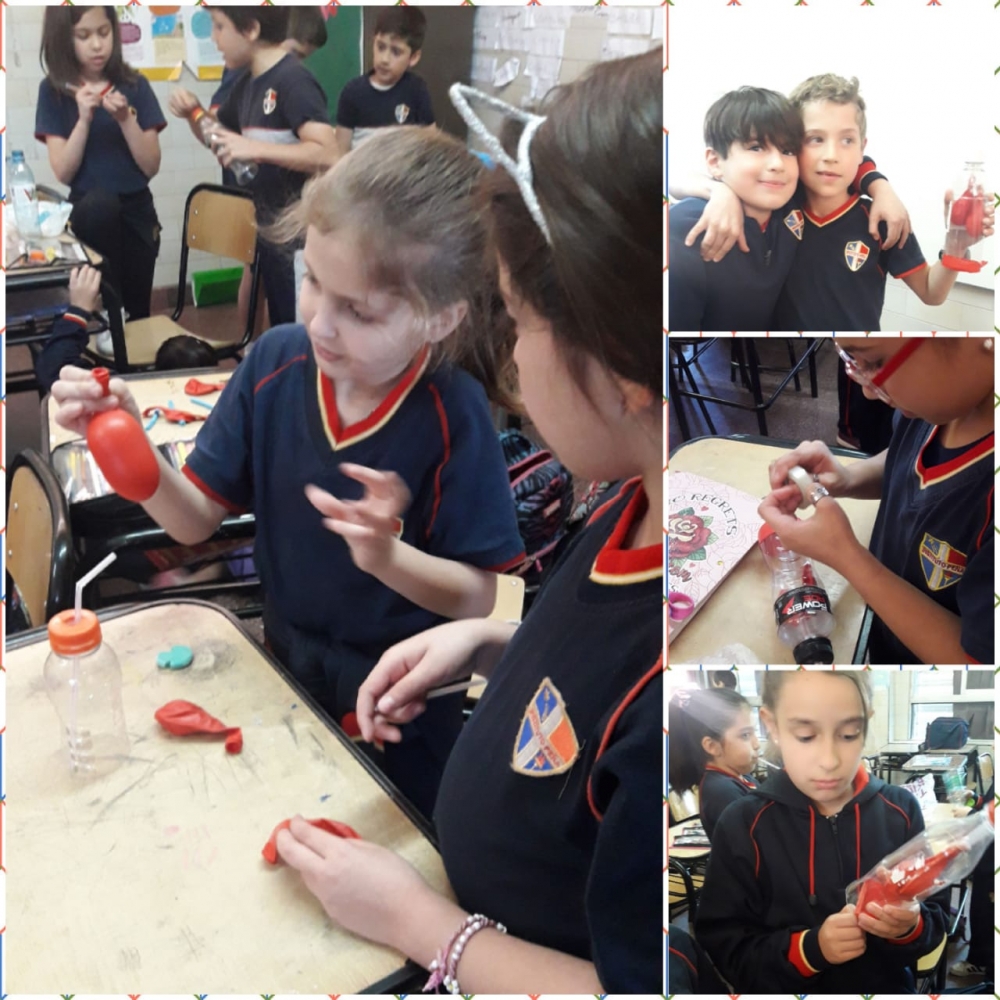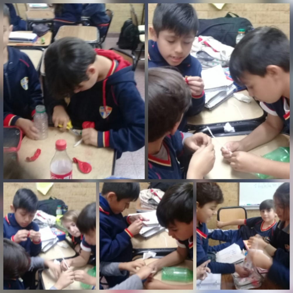 jueves, 25 de octubre de 2018 Los chicos de tercer grado realizan experiencias en el proyecto de Ciencias Naturales, armando "pulmones artificiales"