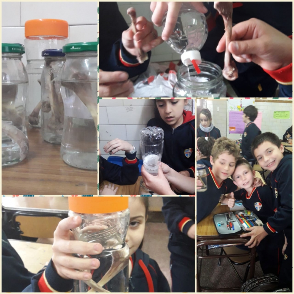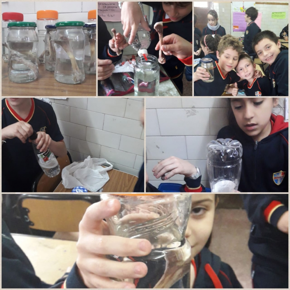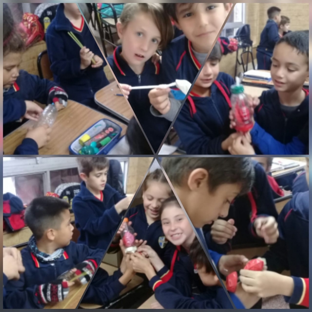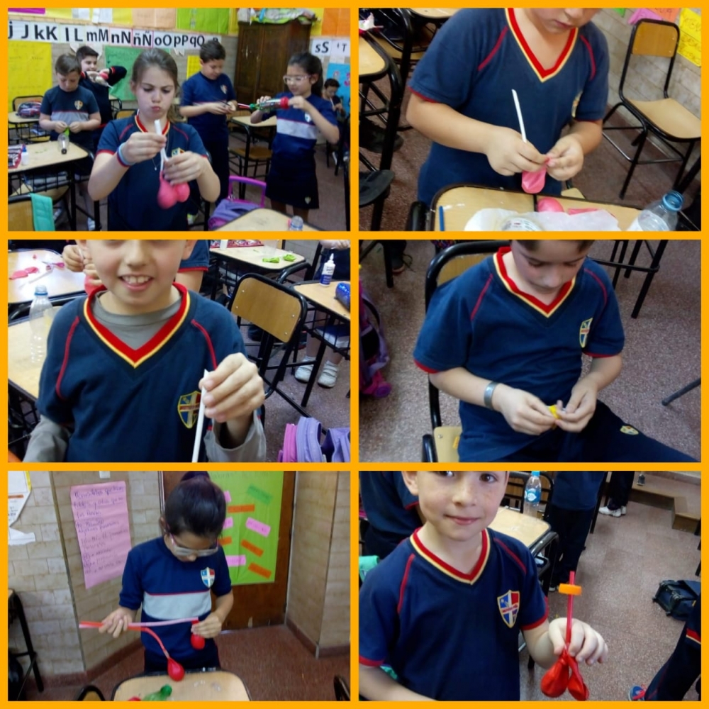 jueves, 25 de octubre de 2018 Los chicos de tercer grado realizan experiencias en el proyecto de Ciencias Naturales, armando "pulmones artificiales"
