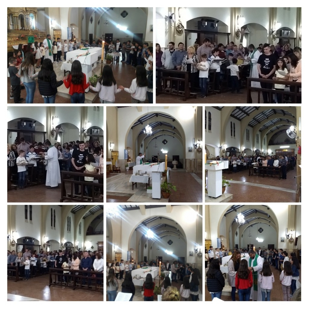 El pasado 5/10 los alumnos de 5 grado B participaron de la celebración de renovación de promesas bautismales y bendición de la ropa blanca, continuando en su preparación para la Primera Comunión