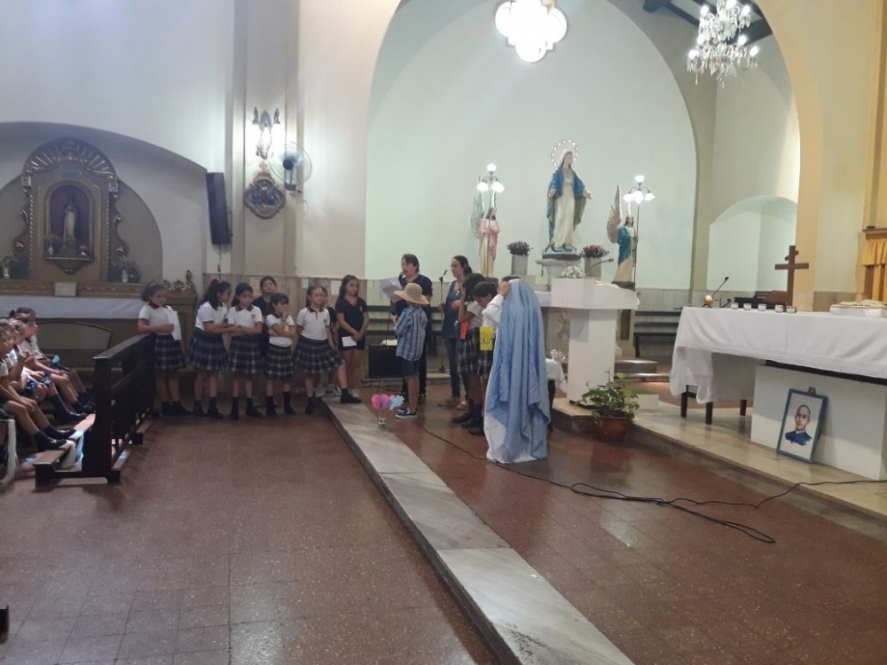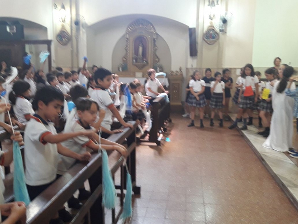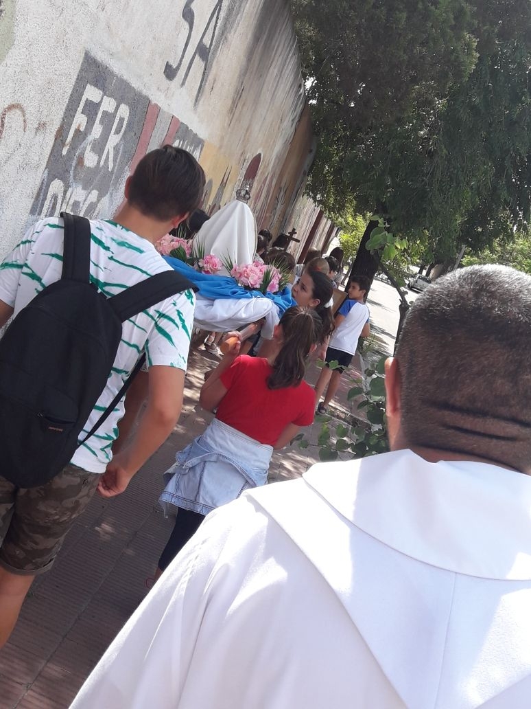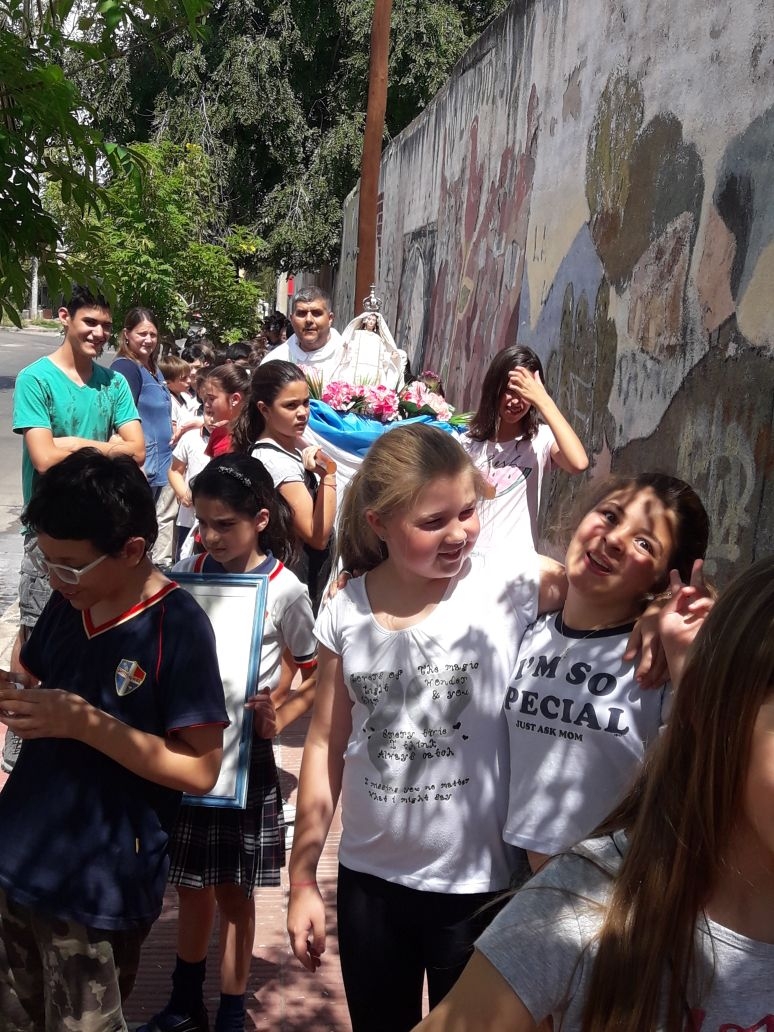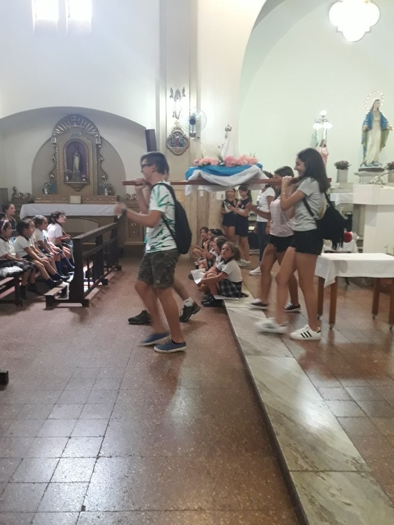 Los alumnos de nivel primario junto a los chicos del grupo perseverancia realizaron una procesión y celebración por los festejos de nuestra Madre María Inmaculada.
