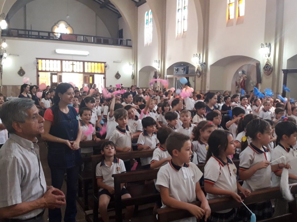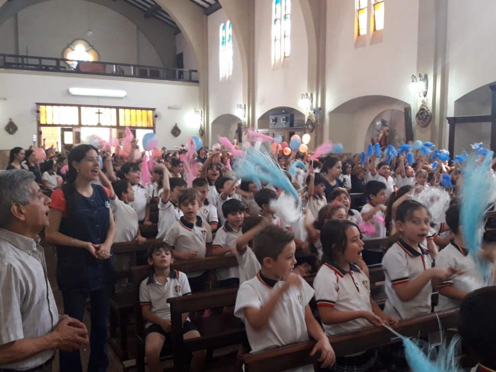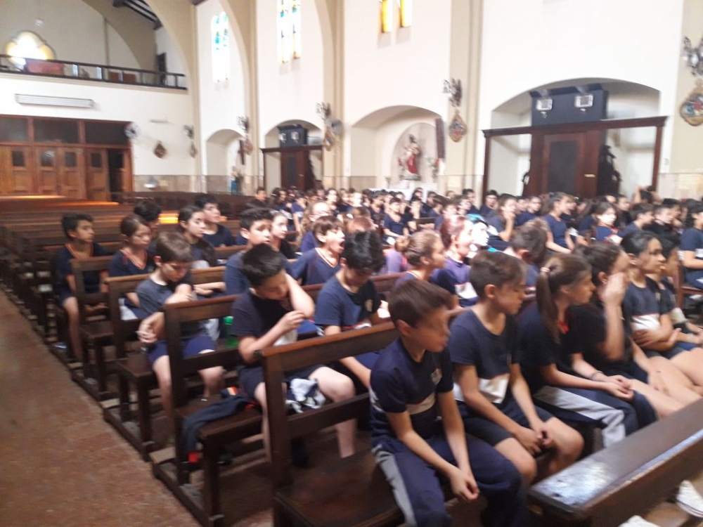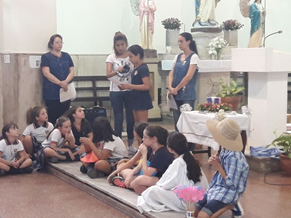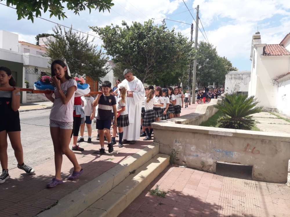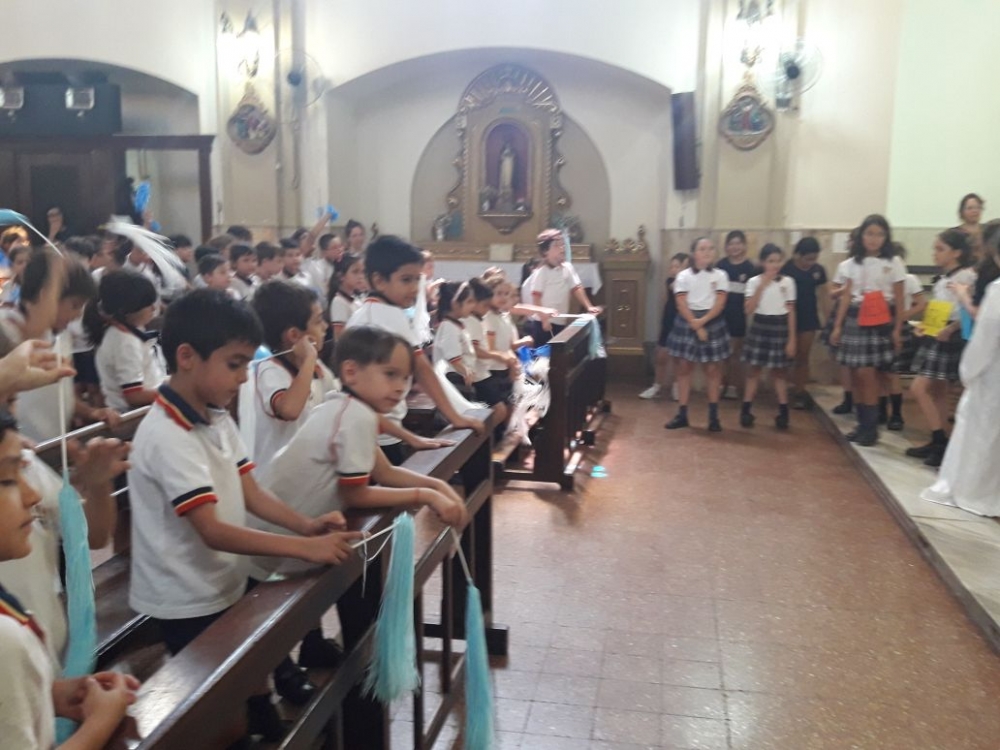 Los alumnos de nivel primario junto a los chicos del grupo perseverancia realizaron una procesión y celebración por los festejos de nuestra Madre María Inmaculada.