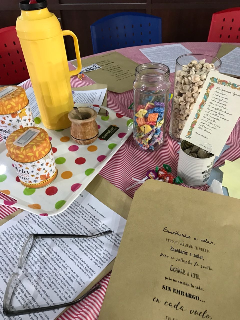 "Enseñarás a volar, pero no volaran tu vuelo. Enseñarás a soñar, pero no soñaran tu sueño. Enseñarás a vivir, pero no vivirán tu vida. Sin embargo... En cada vuelo, en cada vida, en cada sueño, perdurará siempre la huella del camino enseñado." Hoy celebramos la Jornada del Educador Católico en la Institución con el personal del nivel secundario de los 3 colegios de la ciudad de Córdoba de la Congregación.