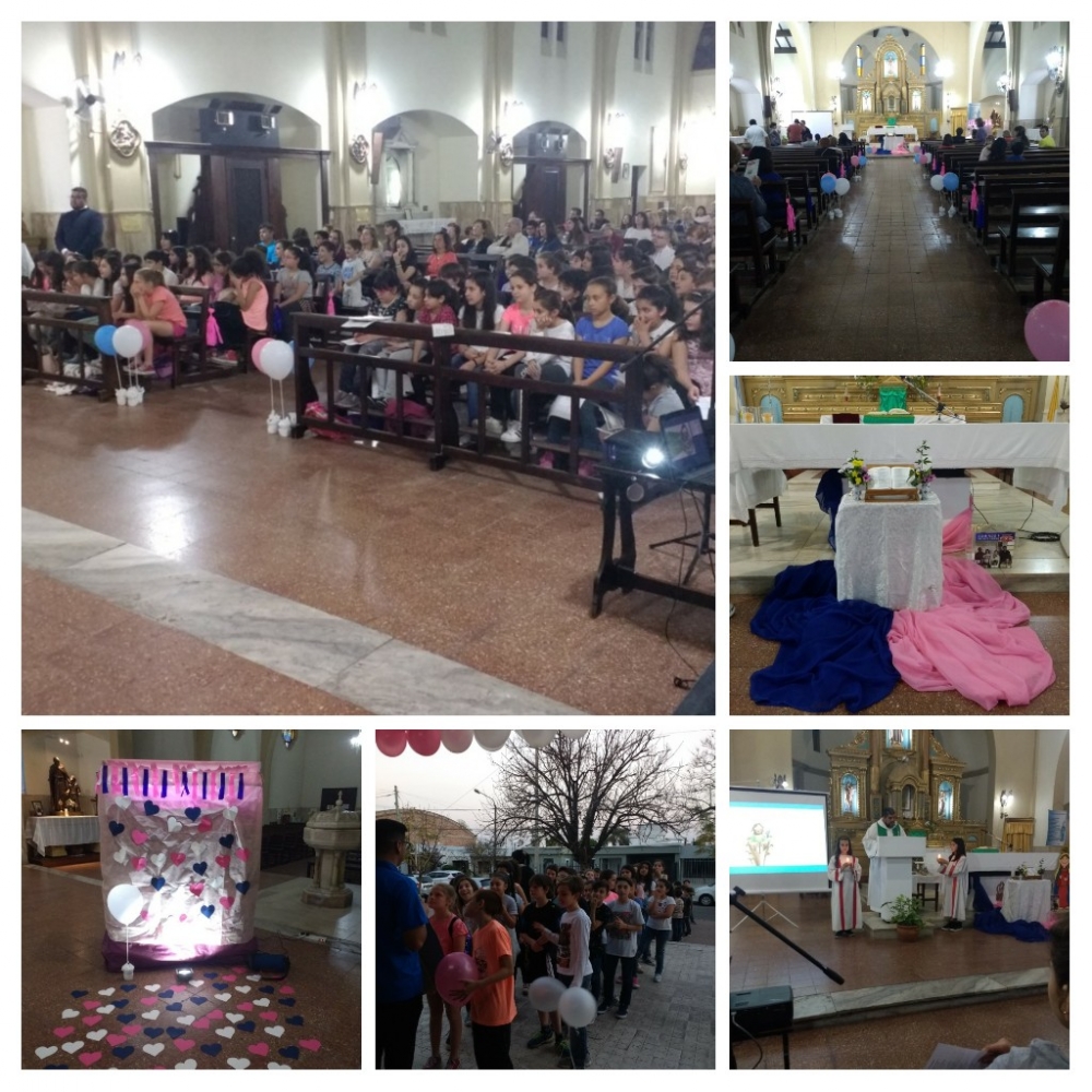 Los chicos que se preparan para hacer su Primera Comunión en el colegio y en la parroquia compartieron el día sábado 8/9 una merienda celebrando el cumpleaños de nuestra mamá María.