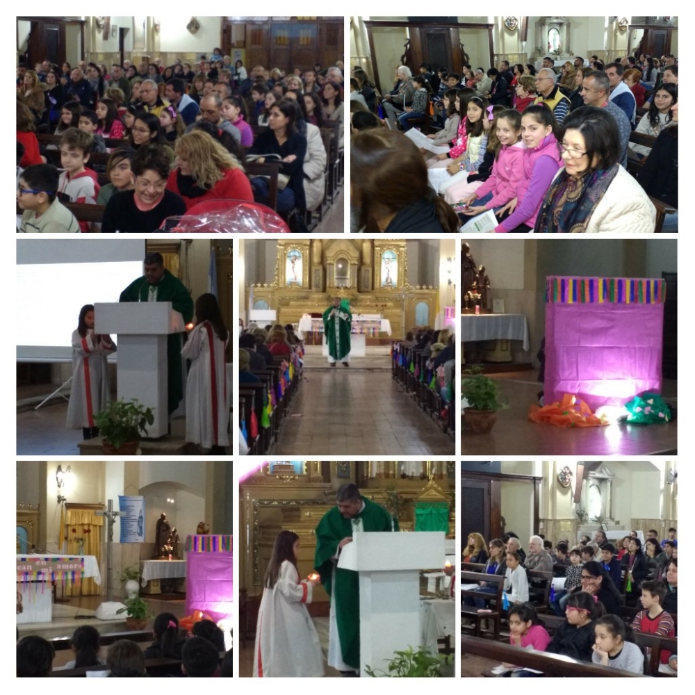 El día sábado 30/06 los alumnos de quinto grado junto a sus catequistas participaron de la misa para niños en la Parroquia María Purísima y Santa Teresita.