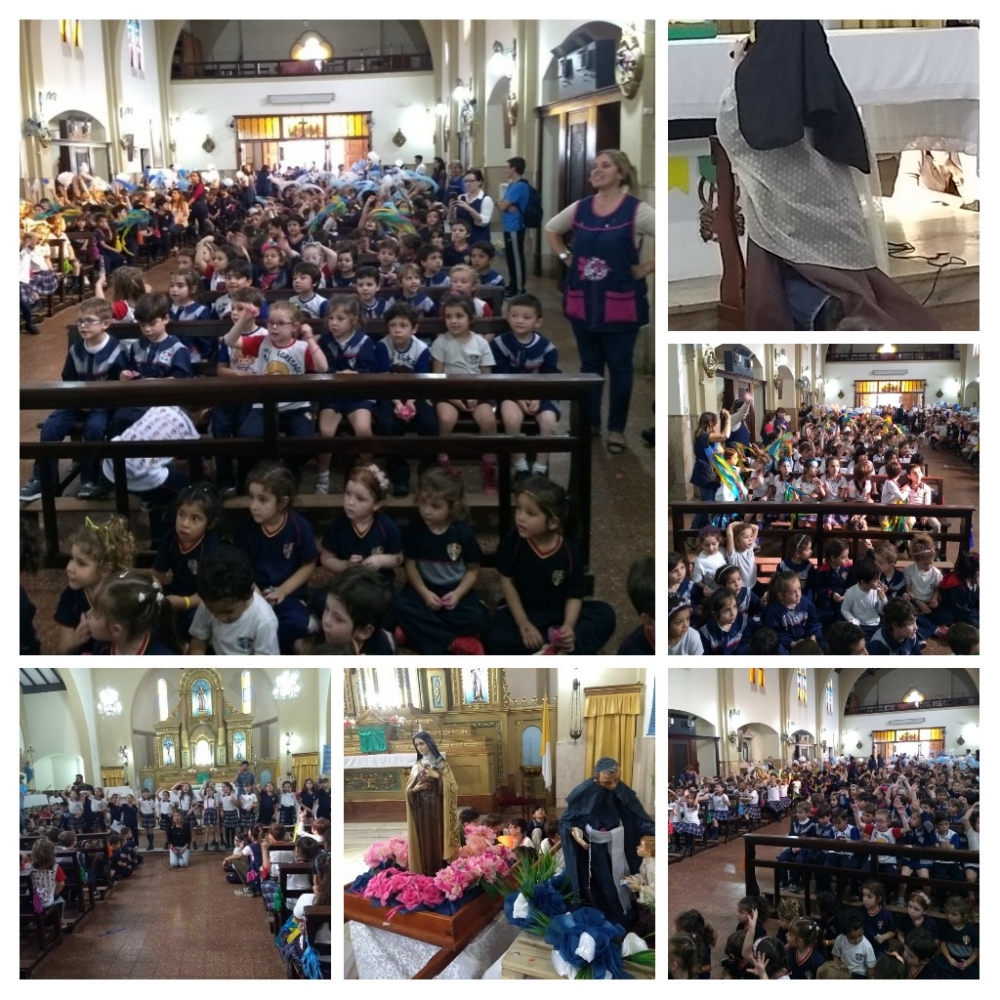 Dicha peregrinación la realizaron los alumnos del turno tarde, de 2° a 4° grado, el día viernes 28/9, en horario de clases y consistió en salir caminando sólo por las veredas, por el portón del patio del colegio, dando la vuelta por las calles L. Galeano, G. Carreras y R. Pedroni ingresando al templo donde nos esperaron los niños de 1° grado para participar juntos de la celebración.