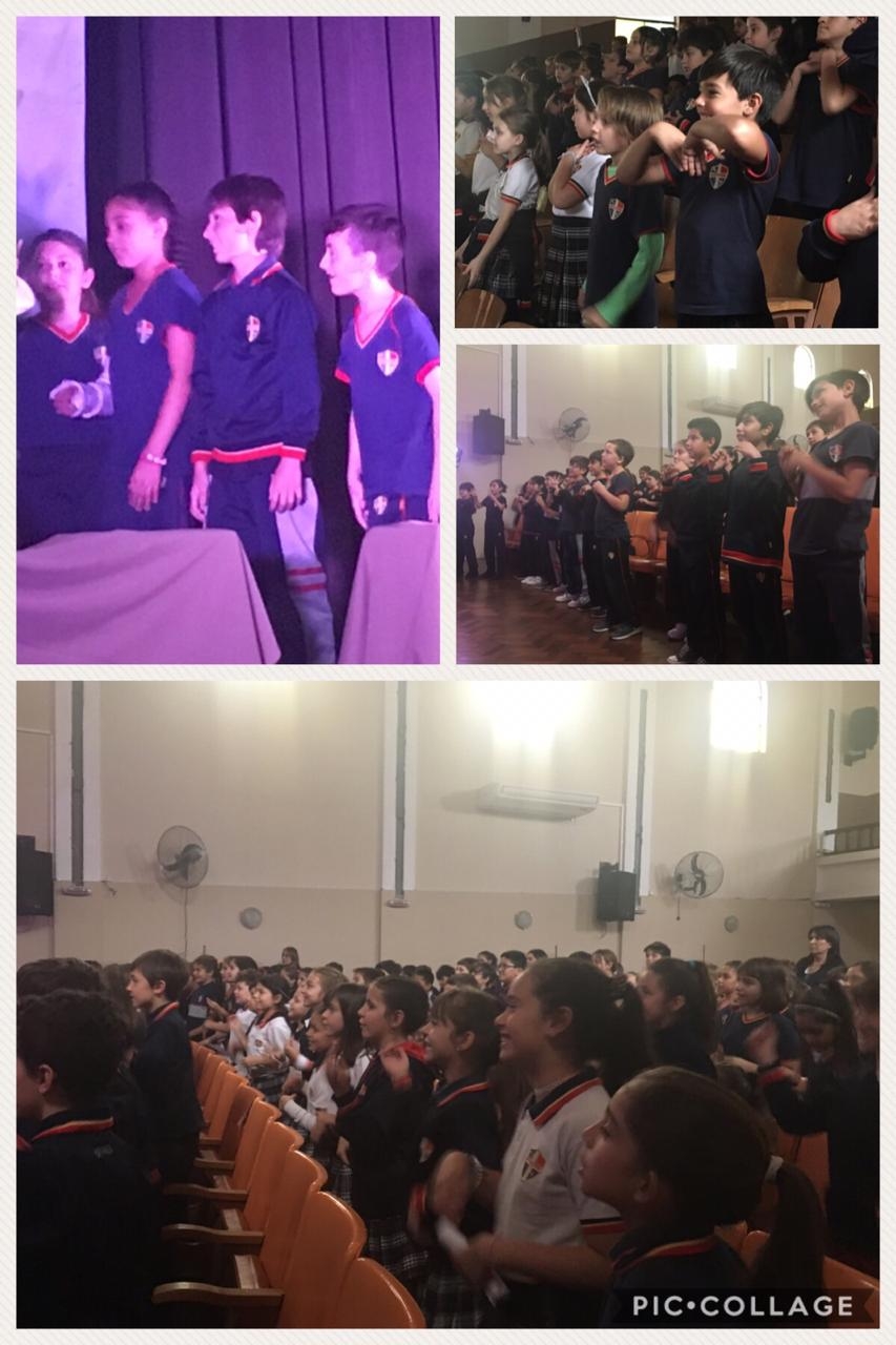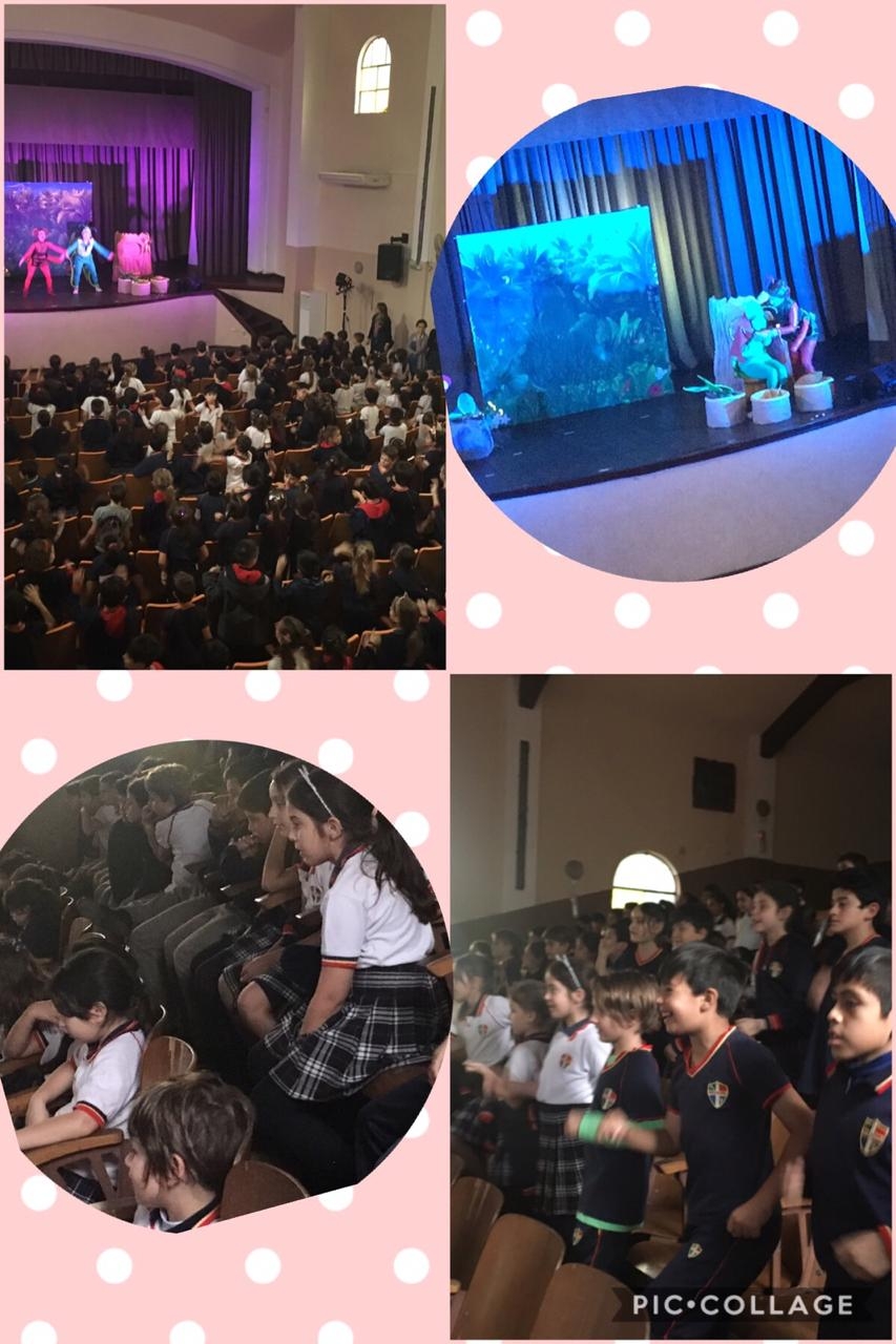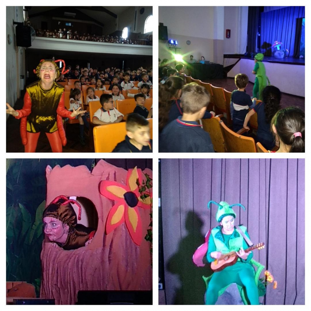Entre las actividades previstas en el Proyecto Institucional de Inglés, los alumnos participaron de un espectáculo interactivo de narración de cuentos, el día lunes 22/10. Trabajaron con actividades antes y después de disfrutar de dicho momento, en el aula con las docentes. La compañía de teatro es “Make Believe” y las obras que presentaron fueron: WHAT´S BUGGING YOU? – The Ant & the Grasshopper (primer ciclo) y LET´S TAKE A SELFIE – The Adventures of Tom Sawyer (segundo ciclo).