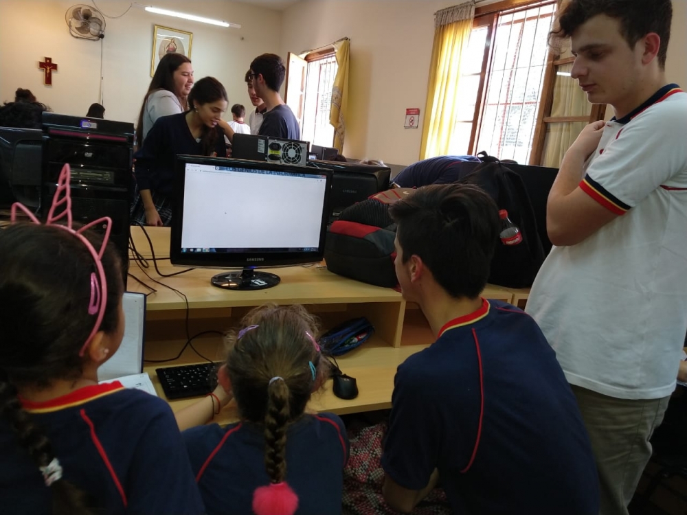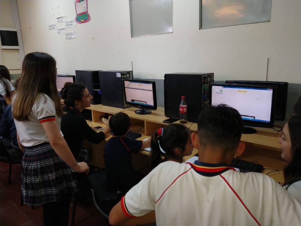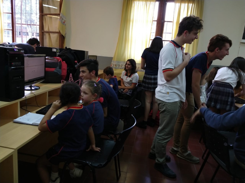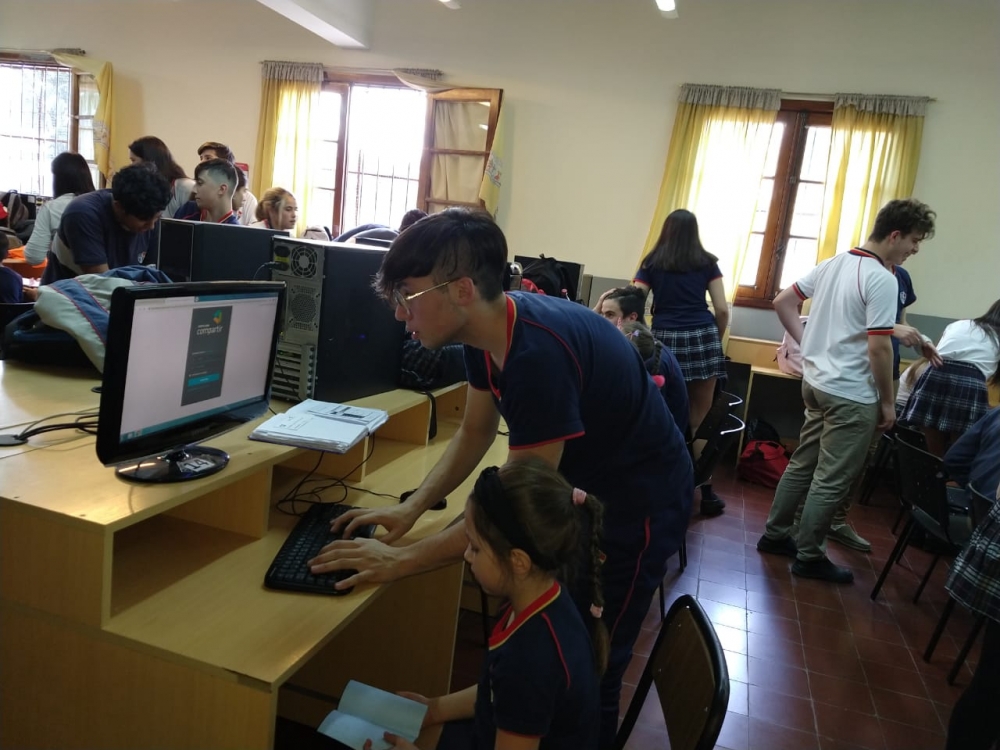 miércoles, 9 de octubre de 2019 Hoy comenzamos a trabajar juntos: "los chicos grandes" del secundario con los chicos de primer grado.Aprendimos a ingresar a la plataforma digital.Una gran experiencia!